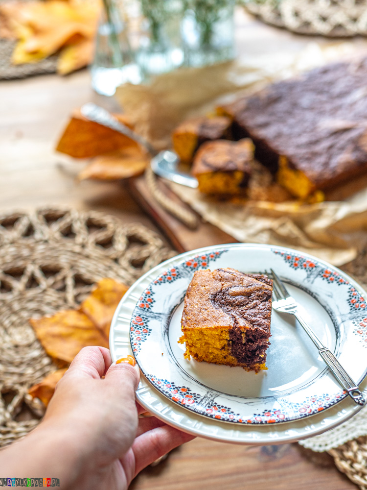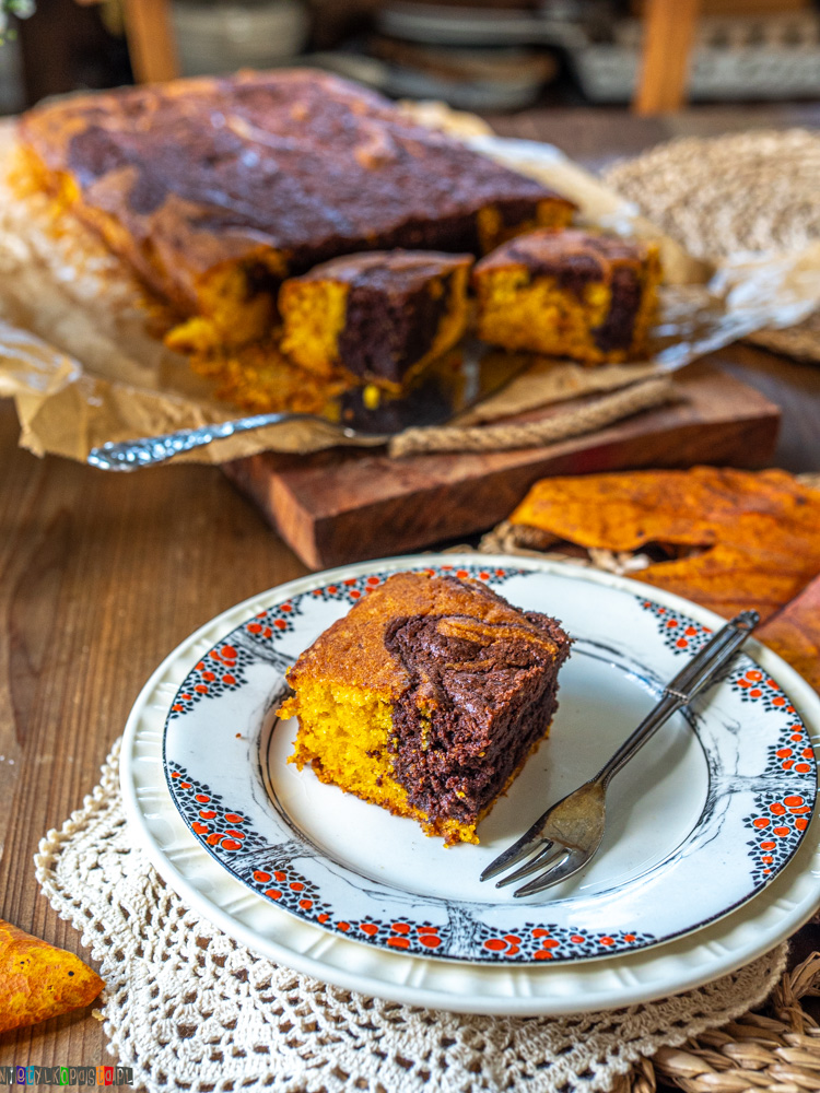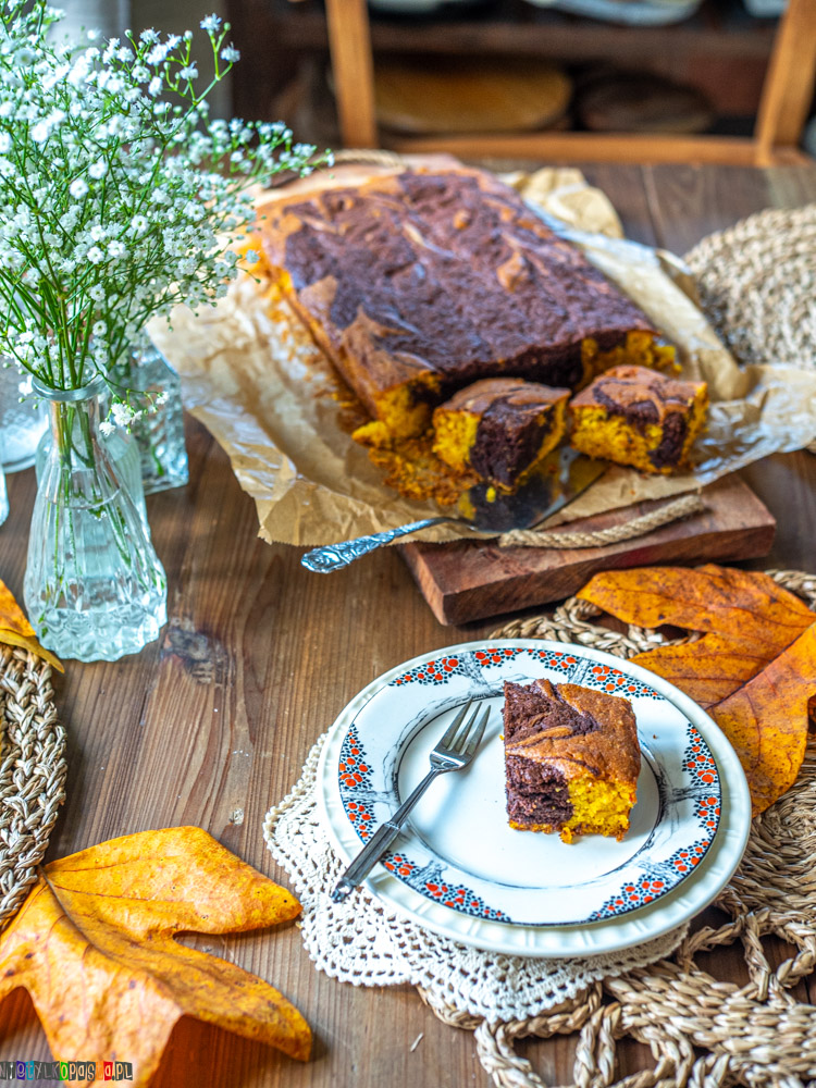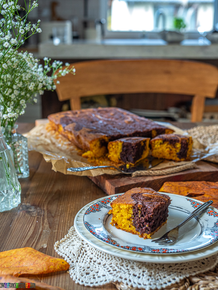 Ciasto dyniowe z czekoladą to prosty, sezonowy wypiek, który zawsze się udaje. Jest miękkie, wilgotne i aromatyczne, a przy tym efektowne dzięki marmurkowemu wzorowi. To doskonały sposób, by wykorzystać puree z pieczonej dyni i przygotować coś słodkiego, ale nie przesłodzonego.