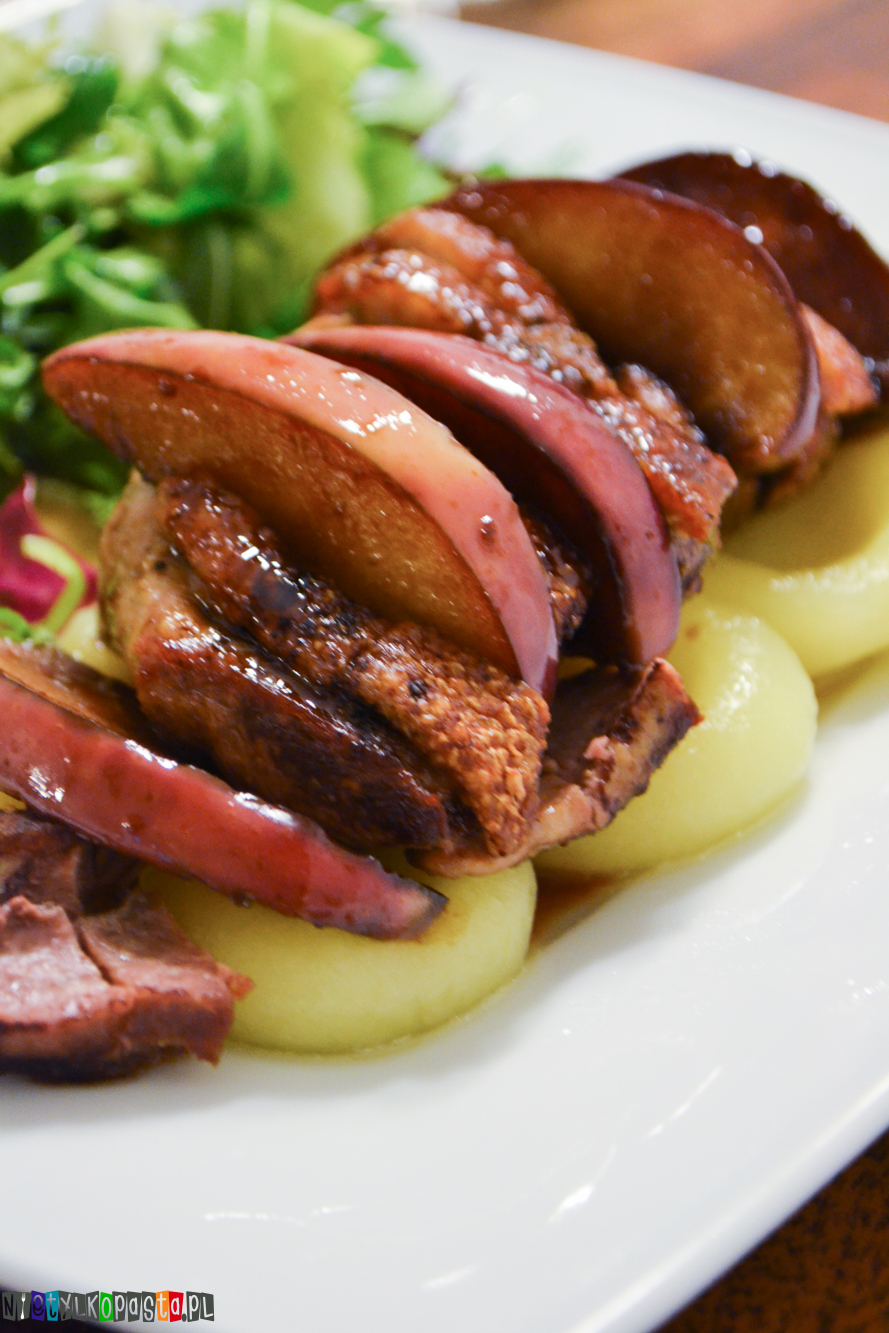 W czasie pieczenia pokrójcie jabłko na cząstki. Do podsmażenia możecie użyć nieco tłuszczu z kaczki pozostałego po smażeniu. Do lekko podsmażonych jabłek dodajcie melasę oraz 2-3 łyżki wody. Chwilę duście do momentu kiedy sos się zagęści.