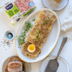 Do mięsa dodajcie przyprawy, cebulę, świeże jajo. Wymieszajcie całość. Przygotujcie foremkę (keksówkę). Na dno ułóżcie mięso na wysokość 2 cm. Włóżcie ugotowane jaja i dopełniajcie mięsem. Pieczcie o 50 min w temperaturze 170 st C. Podawajcie na ciepło lub po przestudzeniu jako dodatek do kanapek.