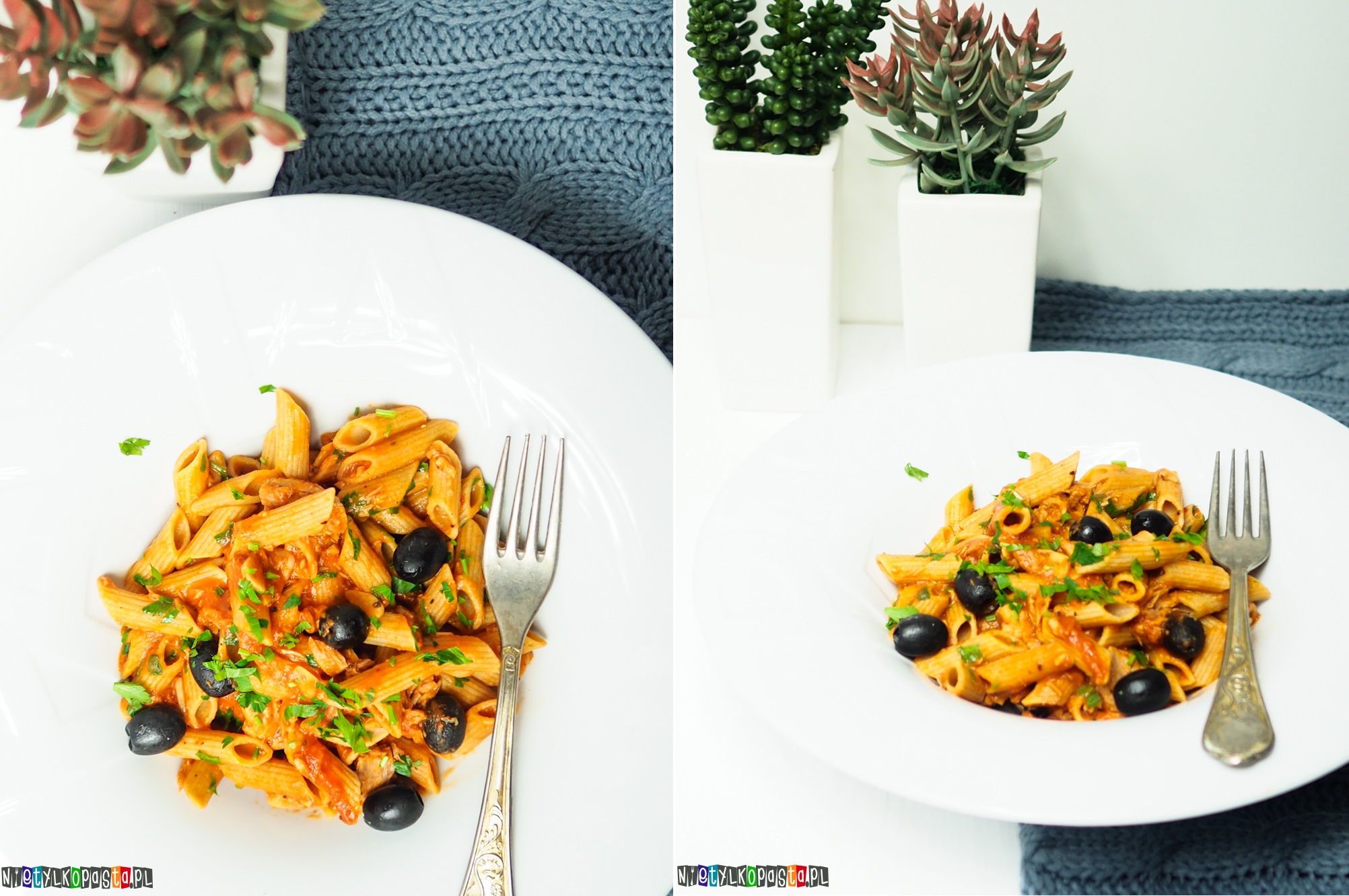 Bardzo lubię tuńczyka, choć w domu jem go raczej sama. Lubię mieć puszkę w zapasie, wtedy przy pustej lodówce zawsze jestem w stanie wyczarować pyszny makaron lub taką pyszną sałatkę z tuńczykiem zwaną sałatką nicejską. Tym razem do makaronu użyłam dosłowne kilku składników i makaronu penne pełnoziarnistego. Ale możecie zastąpić penne dowolnym rodzajem który lubicie.