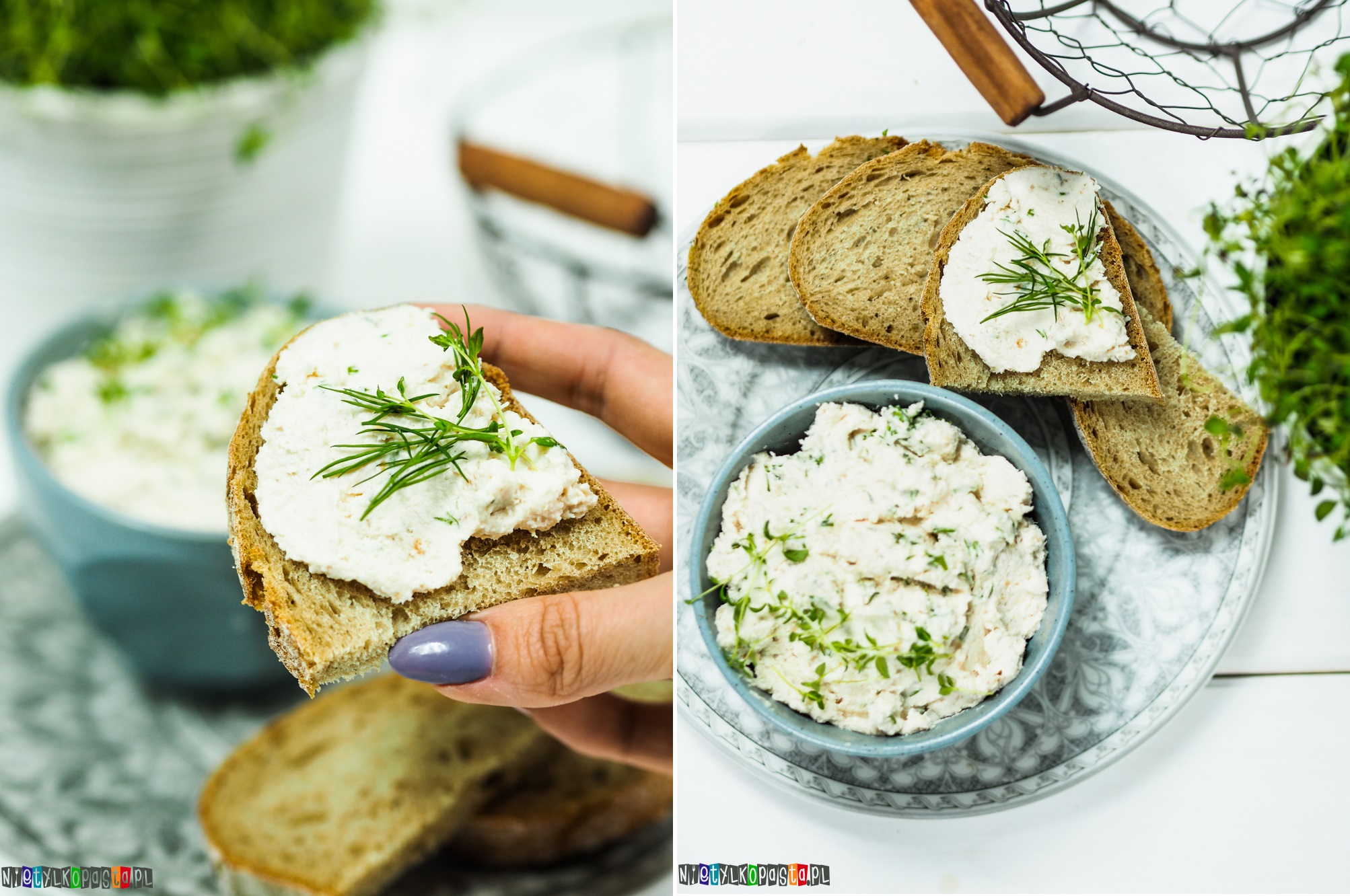 Lubicie pasty kanapkowe? Ja często robię ze składników które zostają w lodówce. Doskonałą bazą jest w ich przypadku serek naturalny, do którego możecie dorzucić wędzoną rybę, warzywa czy tak jak w dzisiejszym przepisie wędzonego kurczaka. Wystarczy odrobina świeżych ziół i gotowe 🙂