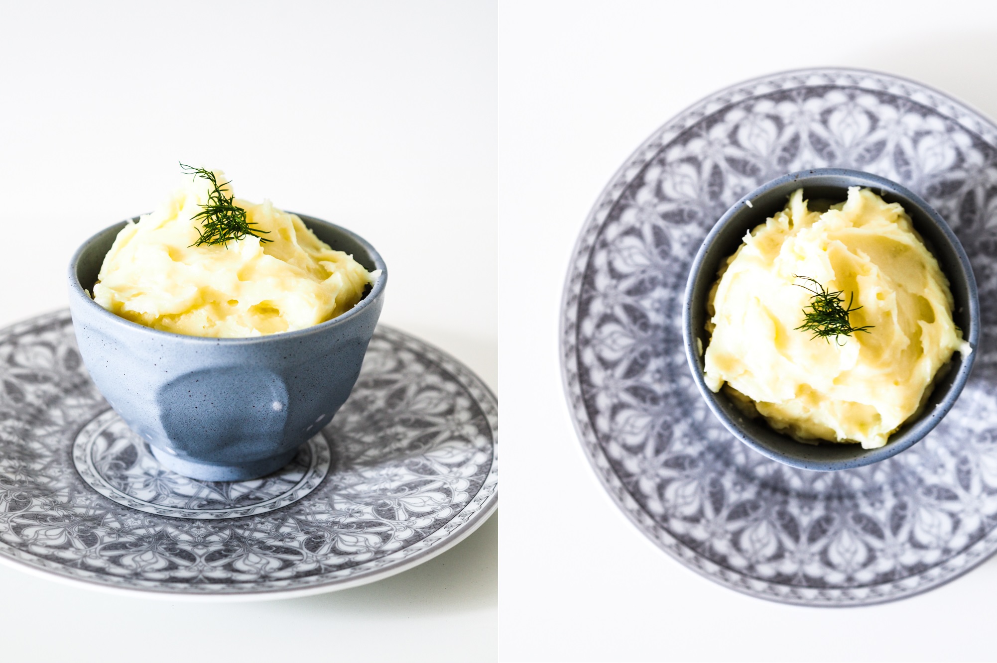 Przygotowanie dobrego puree to podstawa w kuchni. W zależności od oczekiwanego efektu do rozdrobnienia ziemniaków możecie użyć specjalnego tłuczka (ziemniaki mogą być wtedy lekko grudkowate), praski (praska do ziemniaków usunie grudki i nada jednolitą konsystencję) lub końcówki blendującej miksera (przy tym sposobie pure ma najbardziej aksamitną strukturę i jest nieco „lepiące”. Zachęcam do wypróbowania wszystkich wspomnianych sposobów i wybrania tego który Wam najbardziej odpowiada, lub dopasowywania formy puree do przygotowywanej potrawy.
