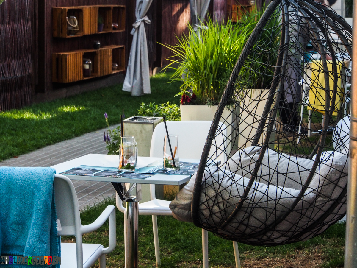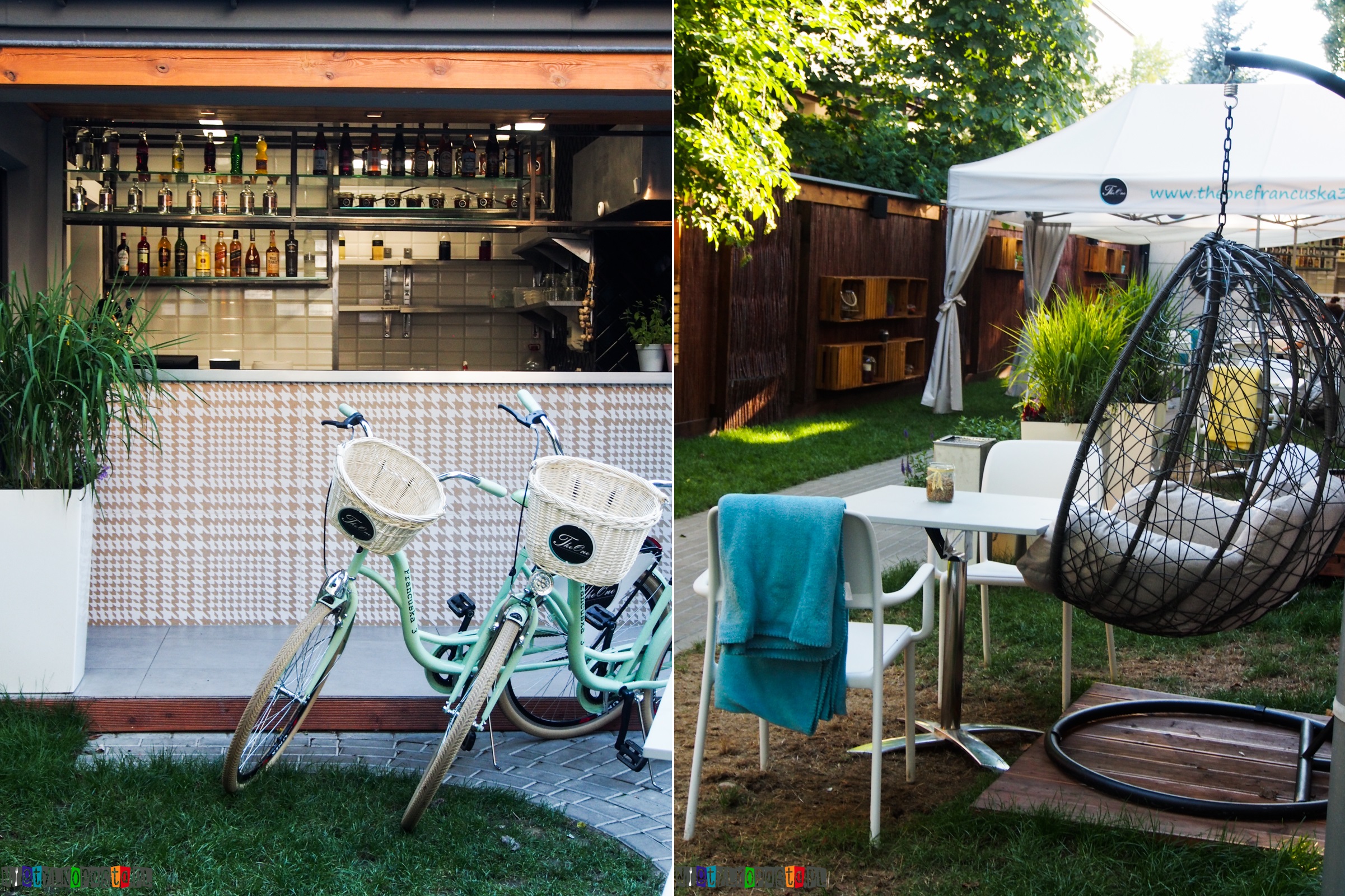 Zadbano tu także o dodatki – na stołach stoją świeczniki wypełnione naturalnymi fasolami lub soczewicą, na oparciach wiszą koce na chłodniejsze dni, jest mnóstwo zieleni i miejsce do zaparkowania rowerów. Całość została dobrze przemyślana.