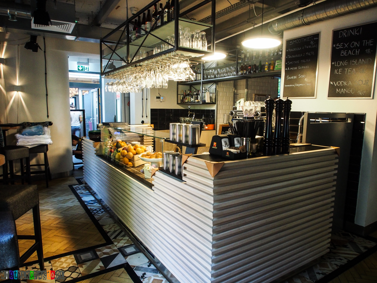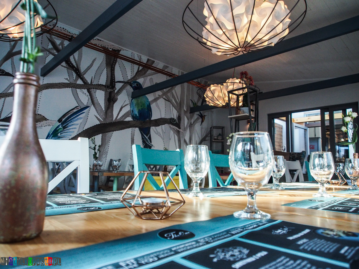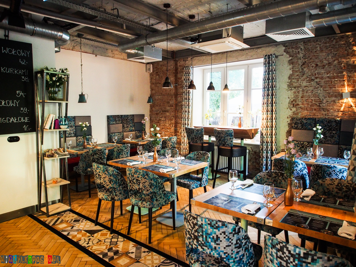 Przyznam, że pierwsze kilka minut krążyliśmy po restauracji nie mogąc się zdecydować gdzie usiądziemy, bo każdy z zakątków był bardzo klimatyczny. W restauracji znajdziecie i małe dwuosobowe stoliki i bardzo duże stoły idealne na spotkania ze znajomymi czy imprezy rodzinne. Osoby z dziećmi mogą liczyć na plac zabaw czy zabawki dla maluchów. Jeśli chcecie wpaść tylko na drinka lub kieliszek wina to najlepszym wyborem zapewne okaże się fantastyczny bar w ogrodzie. Po obejściu całości zdecydowaliśmy się na stolik w ogrodzie, było bowiem przyjemnie ciepło. Obejrzyjcie jednak zdjęcia które zrobiłam we wnętrzach, wystrój jest fantastyczny a naturalna cegła bardzo dodaje uroku.