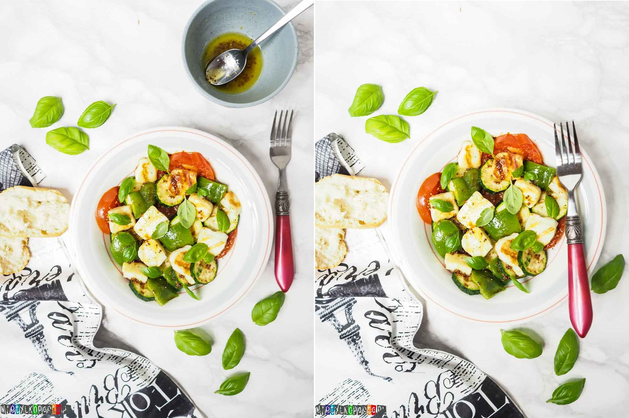 Kolejne danie kuchni greckiej pojawiło się na moim stole. A to wszystko za sprawą pysznego sera halloumi, który kupiłam aby zrobić bulion z jajkiem z serem halloumi, a pozostałą część wykorzystałam własnie do tej sałatki. To też fajny sposób aby wykorzystać resztki warzyw: papryki, cukinii, pomidora, możecie dodać też bakłażana. Jeśli nie macie halloumi pomińcie go lub zastąpcie pokruszonym serem feta, smak będzie nieco inny ale równie smaczny.