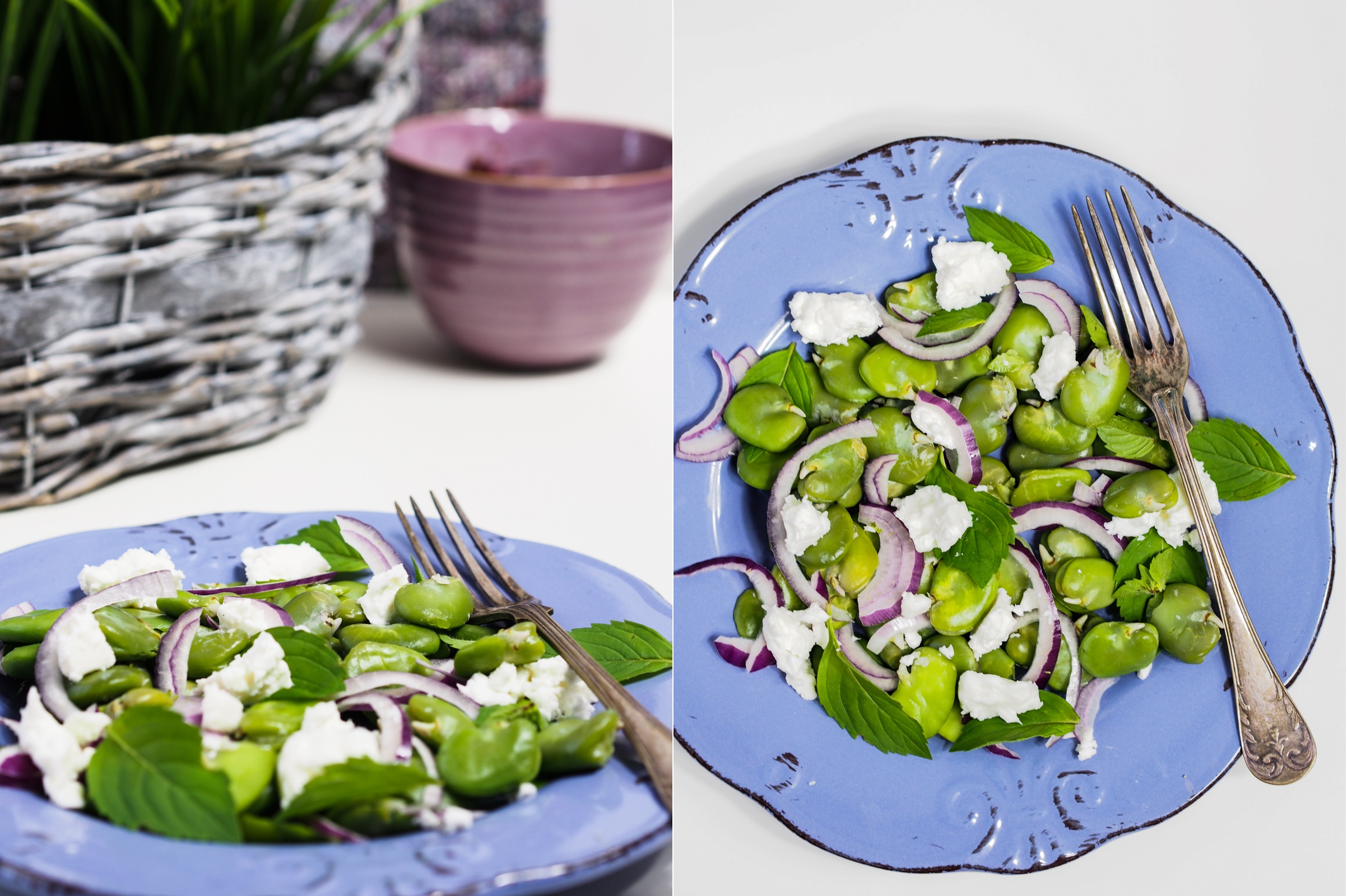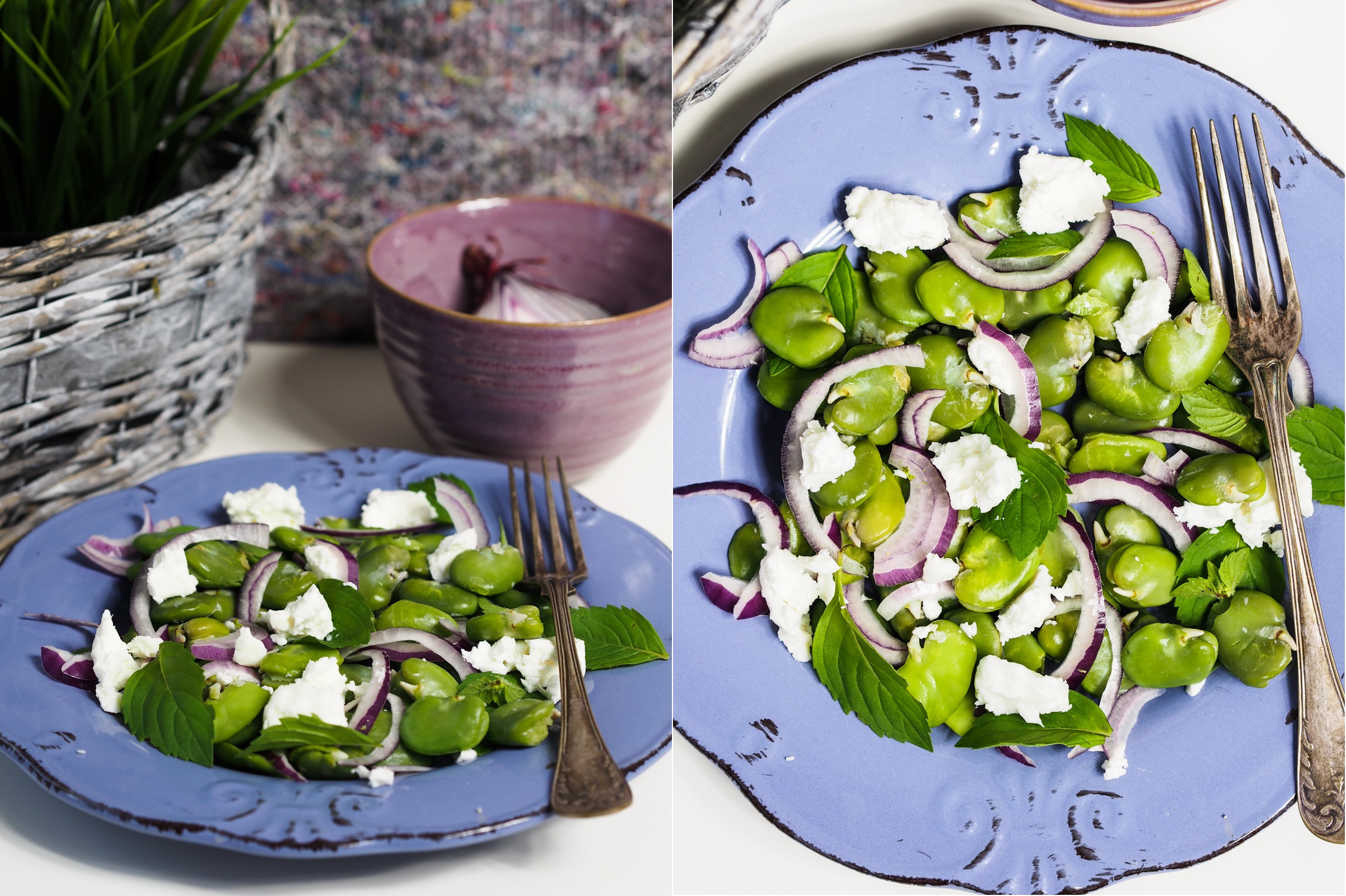 Jak ugotować bób? Należy do wrzucić do gotującej się osolonej wody i gotować 6-10 minut w zależności od tego czy jest młody (młody potrzebuje mniej czasu) oraz jaki stopień ugotowania lubicie. Bób odcedźcie i odstawcie na chwilę do przestudzenia, następnie obierzcie z łupin i połóżcie na talerz lub do miseczki. Dodajcie miętę, cebulę, ser feta a następnie pokropcie sokiem z cytryny i oliwą. Wymieszajcie całość i doprawcie czarnym pieprzem.
