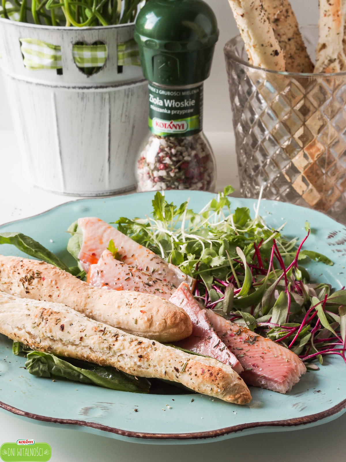 Zapewne tak samo jak ja lubicie lekkie letnie sałatki pełne dodatków i smaku. Tym razem moja sałatka idealnie pasuje do grissini z ziołami włoskimi Kotanyi – przepis na grissini. Tych samych ziół włoskich użyłam jako dodatku do sałatki, do tego wystarczyło kilka kropel soku z cytryny, oliwy i sałatka gotowa 🙂 Dlatego jeśli macie ochotę na ciekawe i pyszne danie sałatka z wędzonym pstrągiem z pewnością spełni Wasze oczekiwania.