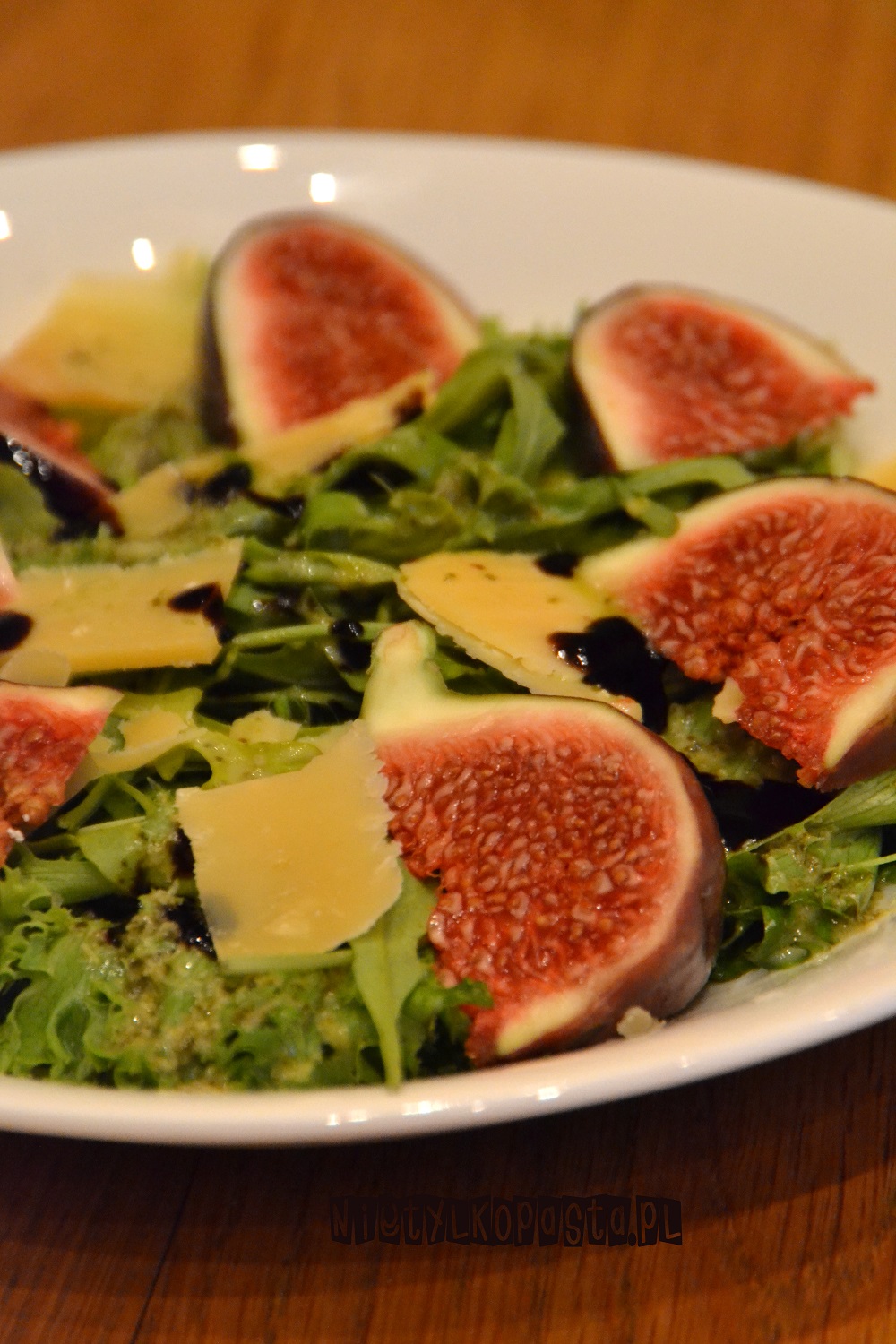 - Pokrój figę w półksiężyce i ułóż na sałacie.