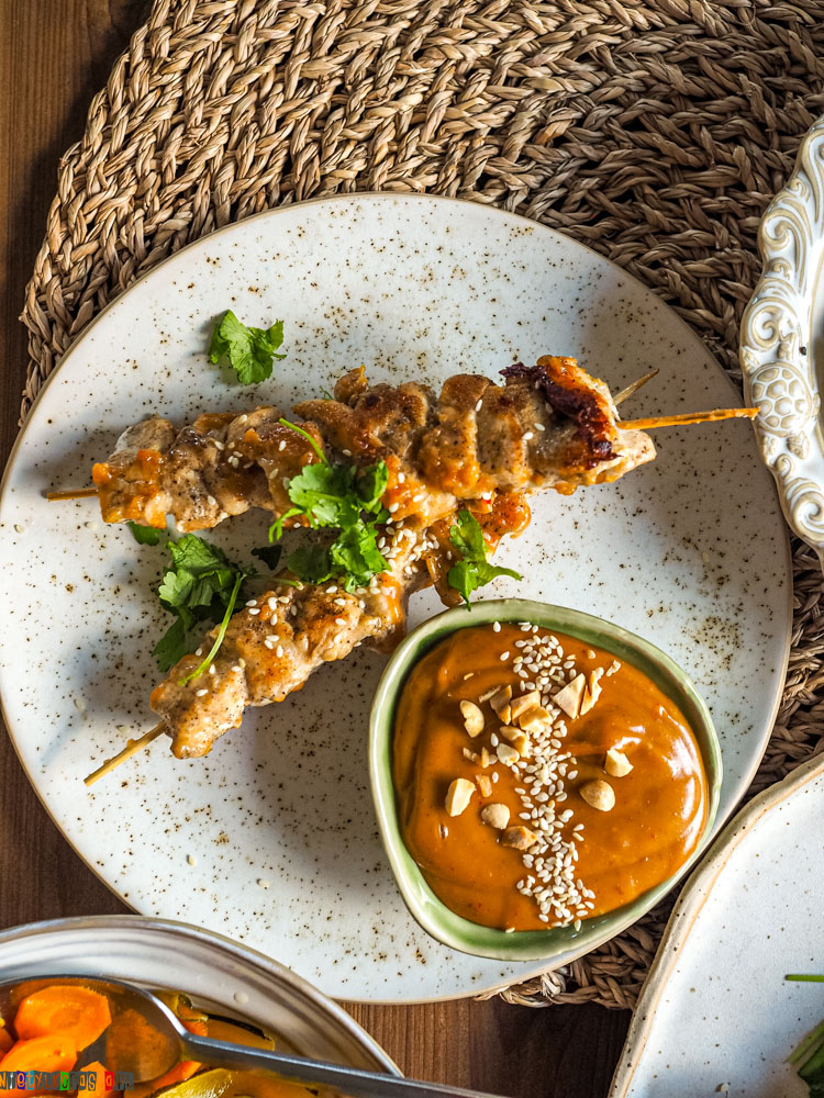 Sos orzechowy to prawdziwa gwiazda tego dania. Połączenie masła orzechowego, mleka kokosowego, sosu sojowego i limonki daje kremową, głęboką bazę, którą przełamuje chilli i aromatyczne przyprawy. Jest lekko słodki, delikatnie pikantny i bardzo przyjemnie klejący się do mięsa. Co ważne, jego konsystencję i intensywność łatwo dopasować do własnych upodobań, dodając więcej limonki, chilli lub mleka kokosowego.