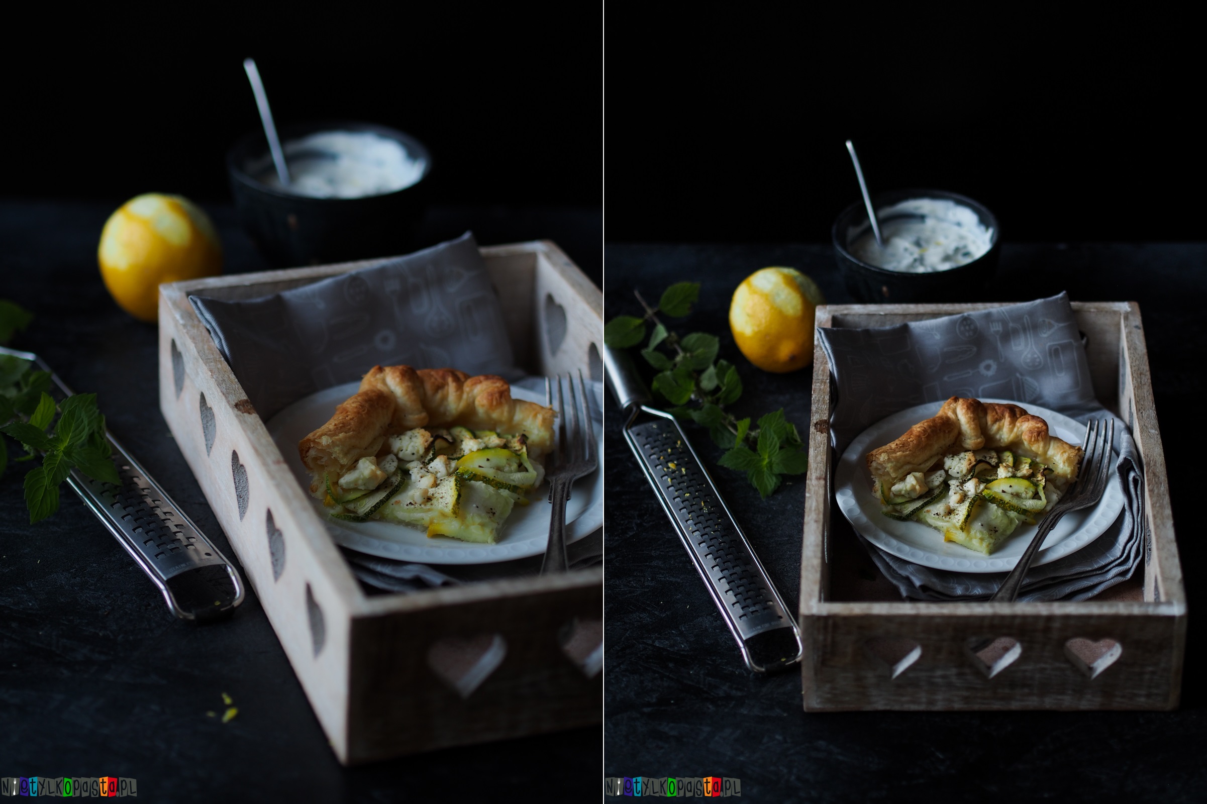 To doskonała propozycja na szybką kolację dla dwóch osób. Tarta ma pyszny smak i nieco rustykalny wygląd. Do tarty możecie wykorzystać dowolny rodzaj cukinii – zielone, żółte, okrągłe, podłużne – pozostawiam to Waszej inwencji i stanowi lodówki. Tarta sama w sobie jest dość sucha, dlatego przygotowałam do niej pyszny sos z dodatkiem skórki cytrynowej i mięty. Sami przekonajcie się że pasuje tu idealnie.