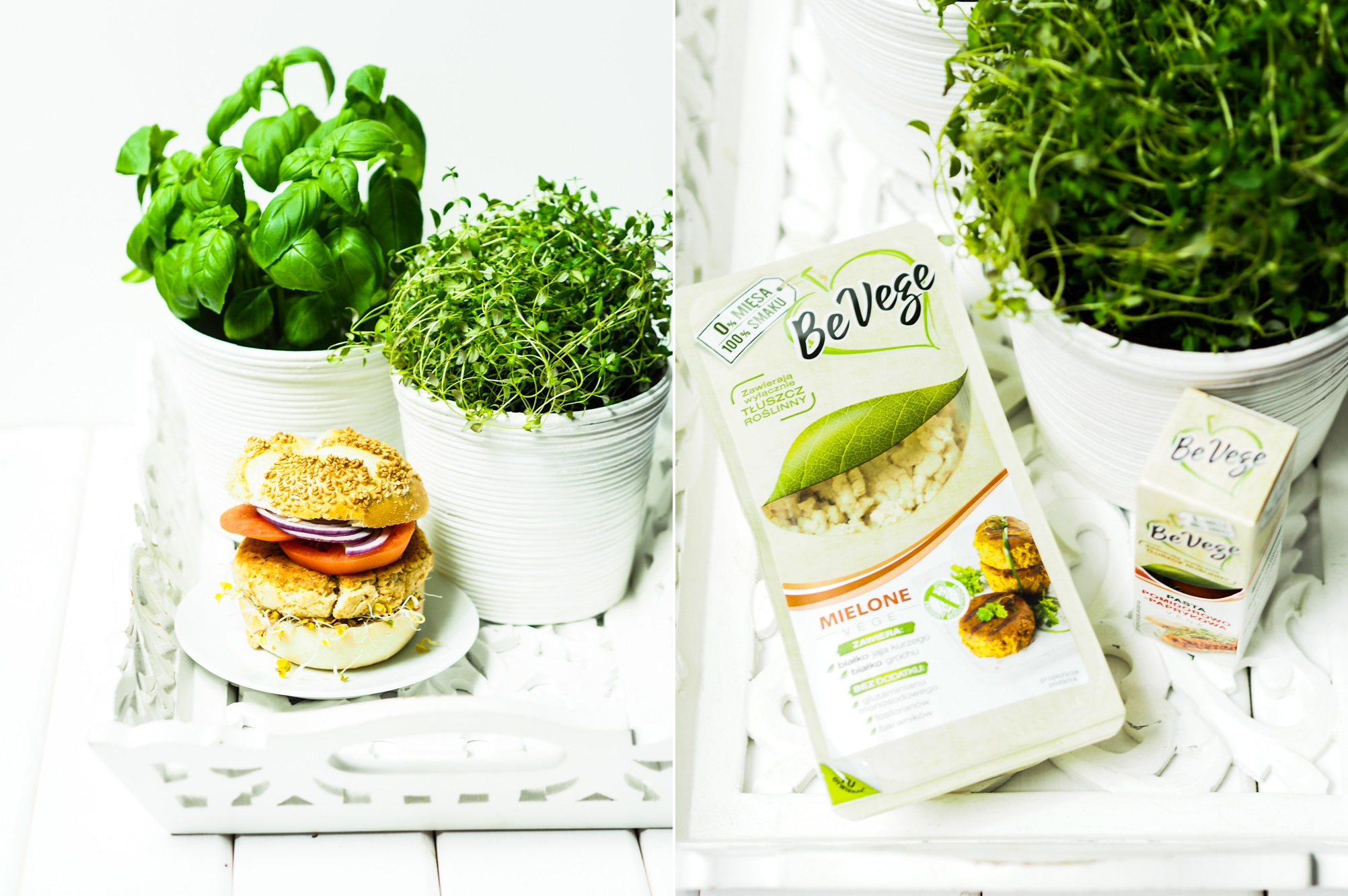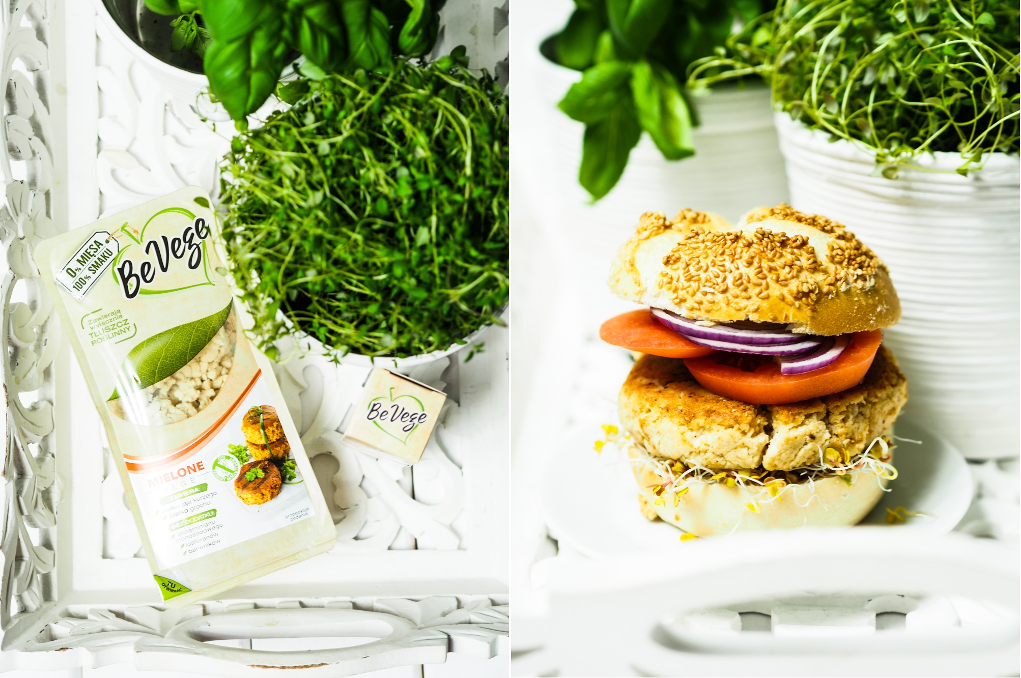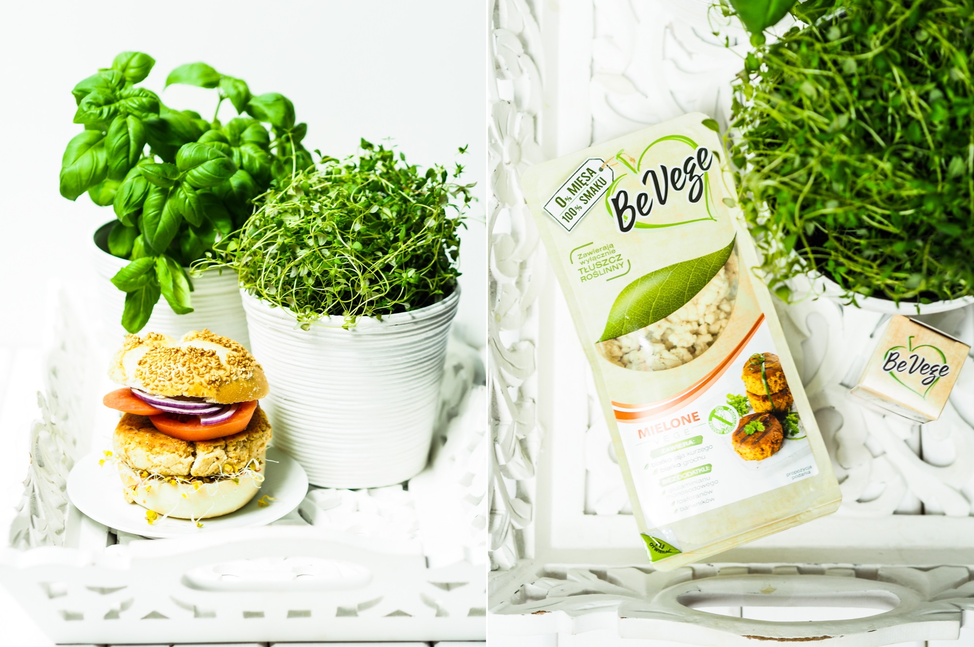 Tym razem dla mnie nowość – danie wegetariańskie. Bardzo lubię warzywa i często zdarza mi się bazować w daniach tylko dla nich. Burgery przygotowywałam jednak dotychczas w ich tradycyjnej formie. Aż pewnego dnia zawitały do mnie produkty z serii BeVege. Na pierwszy ogień poszło mielone z grochu i przygotowałam pyszne burgery w pikantnej odsłonie. Opakowanie starczy Wam na dwa spore kotlety do burgerów. Mielone jest pewną bazą, wystarczy je doprawić zgodnie z własnymi upodobaniami i usmażyć lub zgrillować.